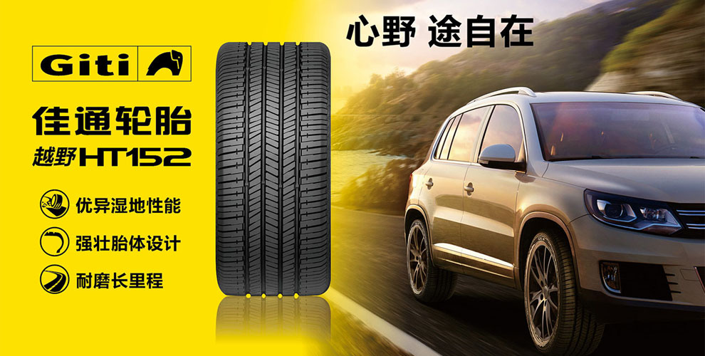 佳通轮胎国内销售总经理陈福忠先生表示,“佳通轮胎自1993年进入中国以来,一直深入洞察中国汽车行业发展趋势和车主实际需求。随着近年来紧凑型及中型SUV市场迅猛扩张,佳通去年推出了Giti4X4 HT152轮胎,满足广大车主城市与郊野跨界驾驶的需求,自在应对城市及户外复杂路况。”作为一款公路型SUV轮胎产品,HT152采用强壮胎体设计及弹石降噪技术,拥有更强的抗刺扎性能和卓越的越野通过性。加宽胎面,进一步提高抓地力和胎面刚性,3mm防擦条及装饰凸块设计,可减少胎侧损伤。配合2层高强度胎体帘线,加强胎体强度。同时,HT152继承了佳通在越野赛事中所累积的技术精华,以卓越的跨界性能及超强的技术含量备受业界关注,在上市短短一年内实现了人气与口碑的双赢,还曾获得《汽车与运动》年度驾趣轮胎评选“2016年度最具驾趣SUV轮胎”。