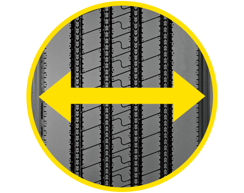 胎面中部纵横曲折的刀槽纹设计,有效破除湿地水膜,优异的抓地性能,更安全;花纹沟底防夹石设计,有效防夹石子,避免因夹石引起的轮胎损坏,延长轮胎使用寿命