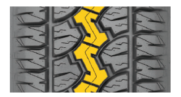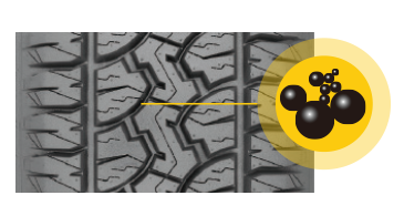含更多天然胶的特殊胎面配方 , 花纹块弹性大韧性强,更耐扎, 更耐磨