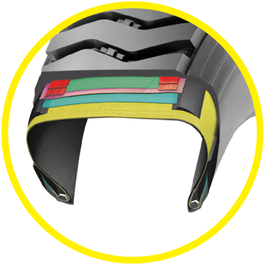 胎体钢丝密度增加;低生热耐撕裂的胎肩垫胶增加;气密层气密性更好
