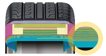 2层高强度胎体帘布结构,有效胎体强度,因此轮胎更耐冲击不易损坏