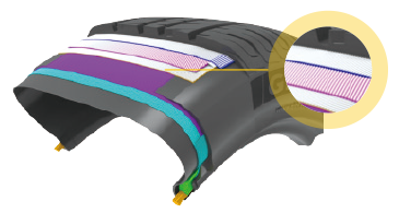 两层钢丝带束层及高束缚冠带层结构,胎冠强,行驶更稳定