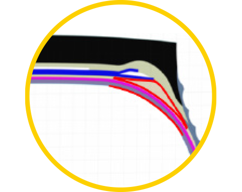 优化的四层带束层结构设计,均衡 轮胎接地压力,提高接地矩形率