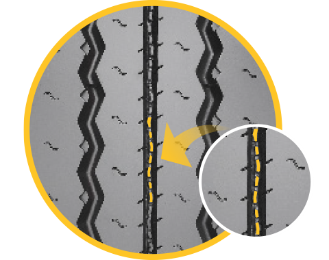 肩部采用宽花纹块设计,增强肩部强度,防偏磨性能大幅提高 耐磨胎面配方,耐磨性能好