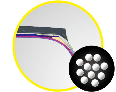 胎圈特殊结构&专用新配方; 加强型胎体&加强带束层; 子口耐久性能提升50%