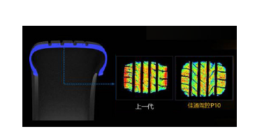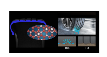 改性功能橡胶和超高性能白炭黑形成的高粘附橡胶网络,保证胎面胶亲水性和制动时胎面与地面的粘附力,提高抗湿滑性能