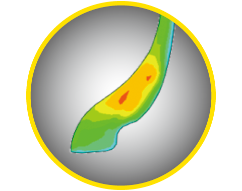 优化冠弧设计,减少肩部带束层端点剪切变形,冠部耐久提升12%;优化胎圈材料分布,降低胎圈内部温度,胎圈耐久提升