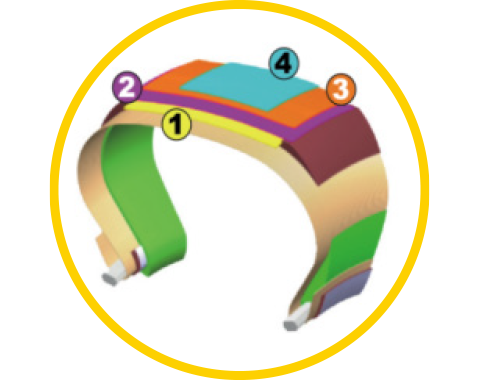 采用四层带束层结构设计,带束层走势更平顺,减少肩部带束层端点剪切变形,耐久性能好。路况适应广