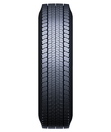 渐变式花纹设计,前期块状花纹,驱动轮使用提供足够的驱动力,后期直沟花纹,拖车轮使用耐磨省油