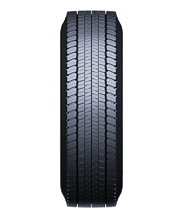 渐变式花纹设计,前期块状花纹,驱动轮使用提供足够的驱动力,后期直沟花纹,拖车轮使用耐磨省油